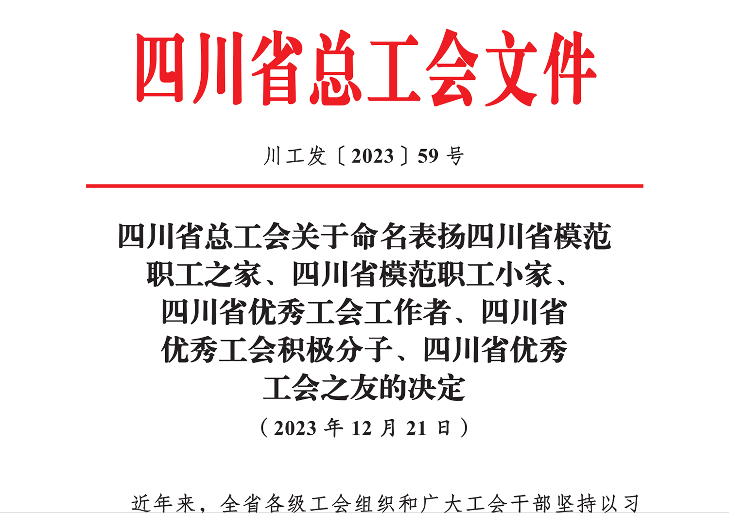 四(si)(si)(si)川省(sheng)(sheng)總工(gong)會辦公(gong)(gong)室發布(bu)四(si)(si)(si)川省(sheng)(sheng)模范職工(gong)之家名單,長(chang)虹控股集團旗(qi)下四(si)(si)(si)川長(chang)虹模塑科技有限公(gong)(gong)司(si)分工(gong)會榜上有名,被授予(yu)“四(si)(si)(si)川省(sheng)(sheng)模范職工(gong)之家”榮譽稱號。