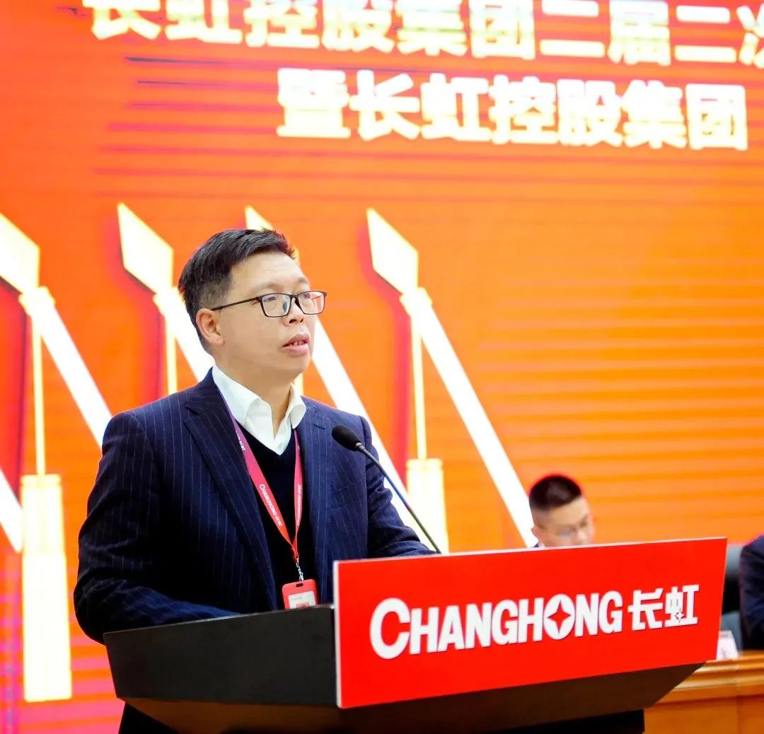 長虹控股(gu)集團黨(dang)委副書記(ji)譚(tan)明獻(xian)主持大會