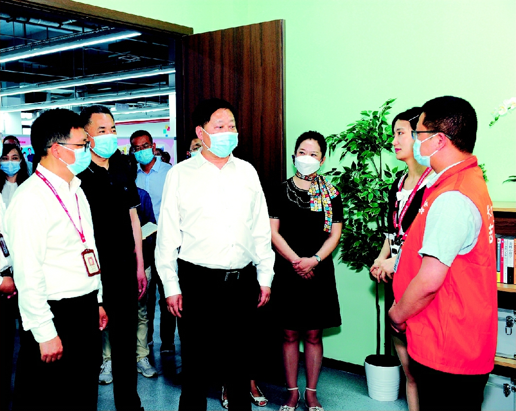 △ 省總工(gong)會黨組(zu)書(shu)記、副主席(xi)宋開慧(hui)一(yi)行實(shi)地考察長虹(hong)職工(gong)心靈(ling)驛站(zhan)建設