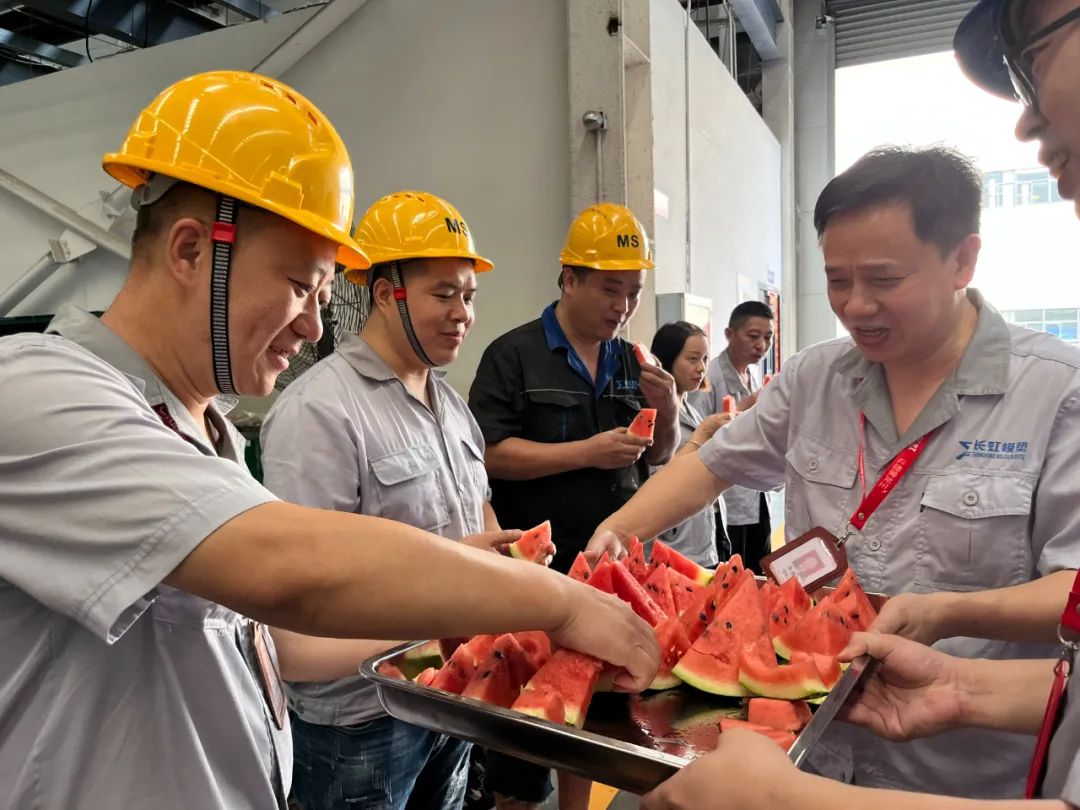 在控股集團開(kai)展(zhan)送(song)清涼(liang)活動(dong)(dong)的(de)同時,各單位積(ji)極響(xiang)應,長(chang)虹模塑(su)、長(chang)虹空調、長(chang)虹技佳、智能制造、華豐(feng)科技等公司積(ji)極主動(dong)(dong)開(kai)展(zhan)了送(song)西瓜、送(song)綠豆湯等形式多樣的(de)送(song)清涼(liang)活動(dong)(dong),強(qiang)化防暑降溫工(gong)作,加強(qiang)企業(ye)安(an)全生產,為公司的(de)生產經(jing)營保駕護航。