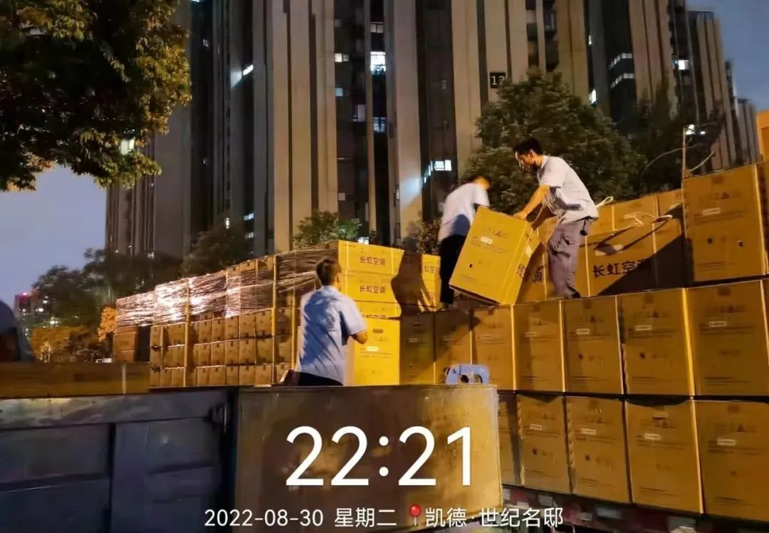 8月(yue)30日(ri)(ri)15:00,長虹快益點(dian)(dian)西南中心接到緊急通(tong)知(zhi)(zhi),需立即組建服務團隊支(zhi)援成都某區域(yu)隔離點(dian)(dian)空(kong)調(diao)(diao)安裝(zhuang)工(gong)作。通(tong)知(zhi)(zhi)要(yao)求(qiu):500余套空(kong)調(diao)(diao)產(chan)品將(jiang)于當天晚上10點(dian)(dian)進場,安裝(zhuang)工(gong)作需在9月(yue)2日(ri)(ri)中午(wu)12點(dian)(dian)前完成。