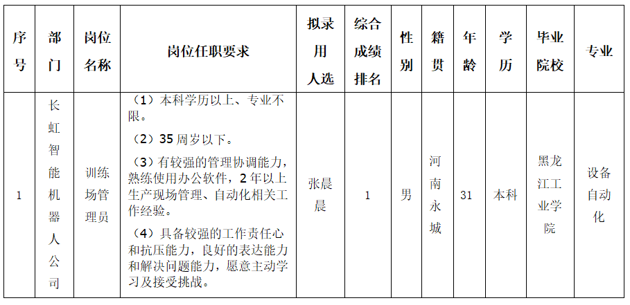 四川長虹虹微科技有限公司關于招聘訓練場管理員崗位擬錄用人員的公示