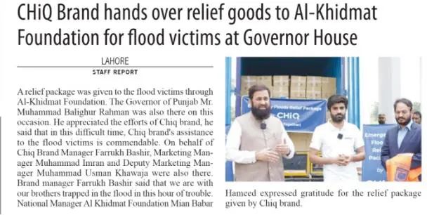 9月6日(ri),在完成所有救濟物品(pin)的(de)采(cai)買和打(da)包工(gong)作后,子公司將救濟物品(pin)運送至拉(la)合爾市總督(du)府。本(ben)次救濟物資由(you)Al-Khidmat 基金(jin)(jin)會(hui)(hui)接收,再由(you)基金(jin)(jin)會(hui)(hui)派發至受災(zai)人民(min)。同(tong)時,旁遮普省州長Baligh ur Rehman先生(sheng)參與了捐贈(zeng)發車儀式,表示十分感(gan)謝長虹巴基斯(si)坦子公司為受災(zai)人民(min)所做的(de)努(nu)力和付(fu)出。